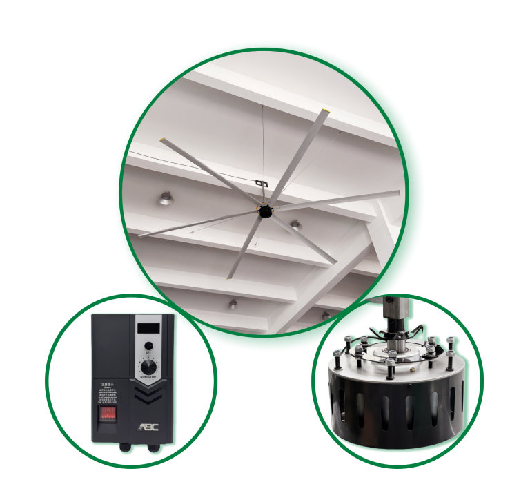 Compared with traditional fans or air conditioning systems, HVLS ceiling fans use a low-speed, large-diameter air supply mode to optimize energy consumption while ensuring comfortable airflow.